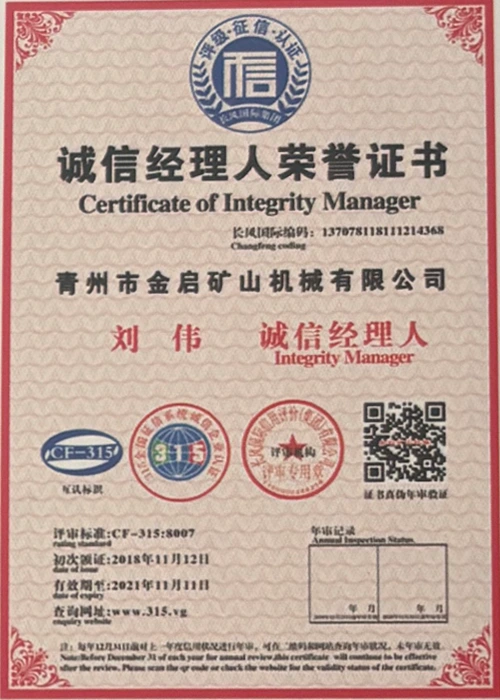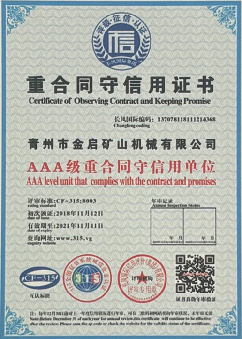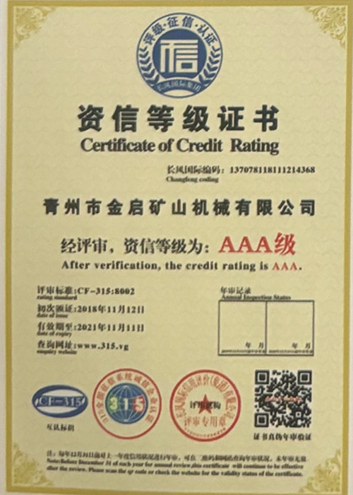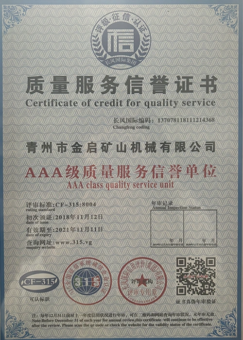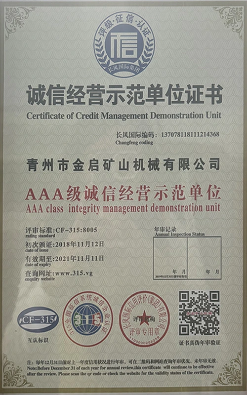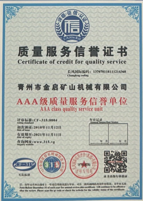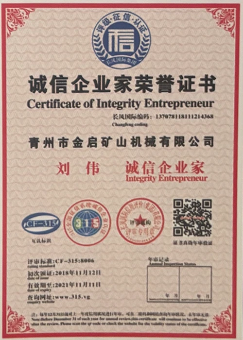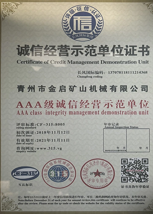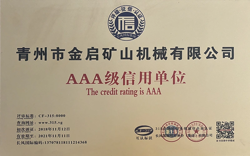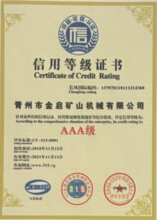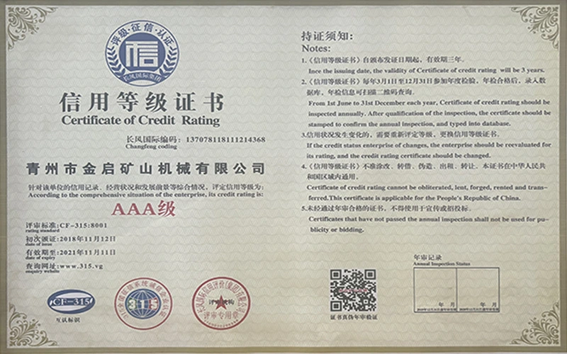 Sukaupusi ilgametę patirtį pramonėje, remdamasi griežta kokybės kontrole ir nuolatinėmis technologinėmis naujovėmis, įmonė įgijo daugybę autoritetingų kvalifikacijų, sertifikatų ir patentų sertifikatų, įskaitant ISO kokybės vadybos sistemos sertifikavimą, kasybos produktų saugos sertifikatus, taip pat daugybę išradimų patentų ir naudingųjų modelių patentų, skirtų įrangos struktūros optimizavimui ir energijos taupymo technologijoms, didelei gamybos techninei patobulinimui ir demonstravimui.